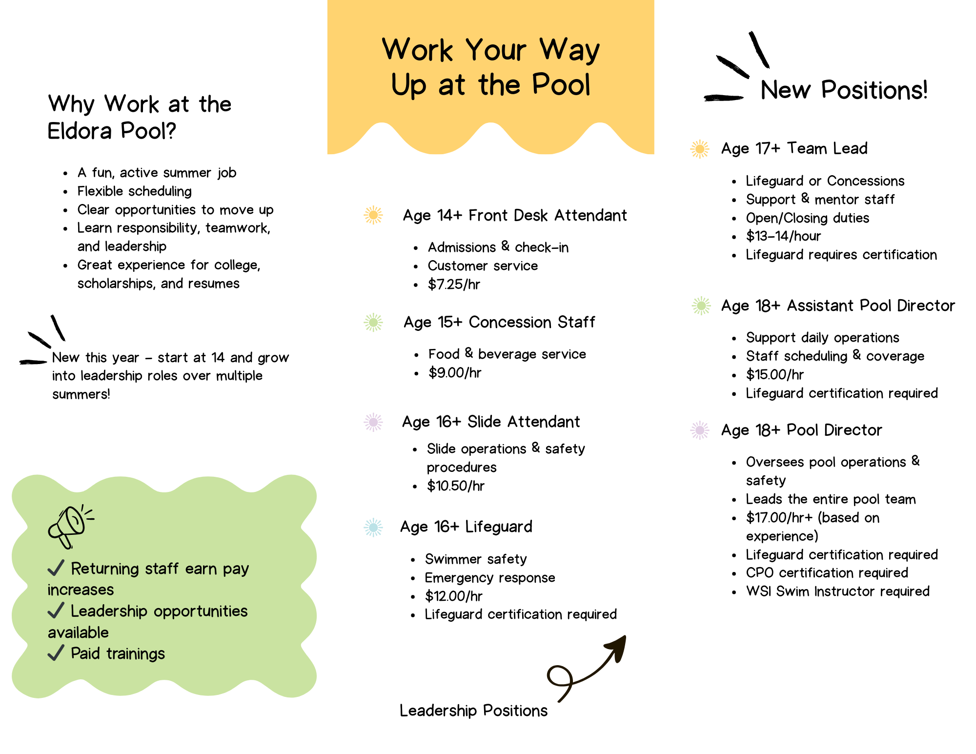 Season Pass & Swim Lesson forms can be dropped off at City Hall or emailed to pooldirector@eldoraiowa.com